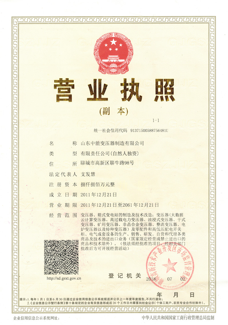 上一篇: 浙江油浸式电力变压器型号备案证书